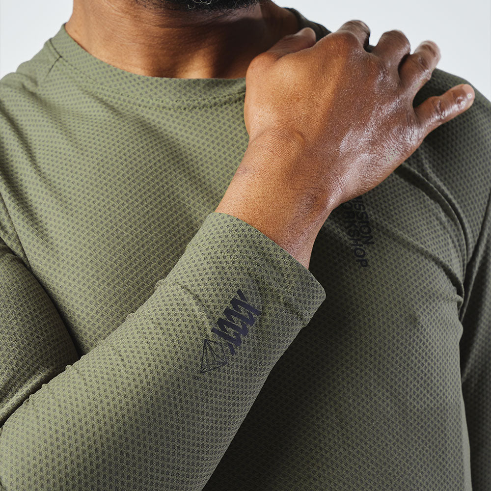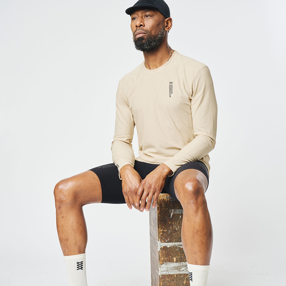 Le Mission Pro Tech Tee : LS est fabriqué à partir d'une maille dimensionnelle italienne ouverte qui augmente de façon exponentielle la surface de respirabilité et de séchage rapide. L'évacuation de l'humidité est assurée par deux fils différents qui créent un différentiel qui éloigne l'humidité du corps. Il convient parfaitement comme couche de base, comme alternative au jersey ou simplement comme tee-shirt à manches longues haute performance à porter tous les jours.