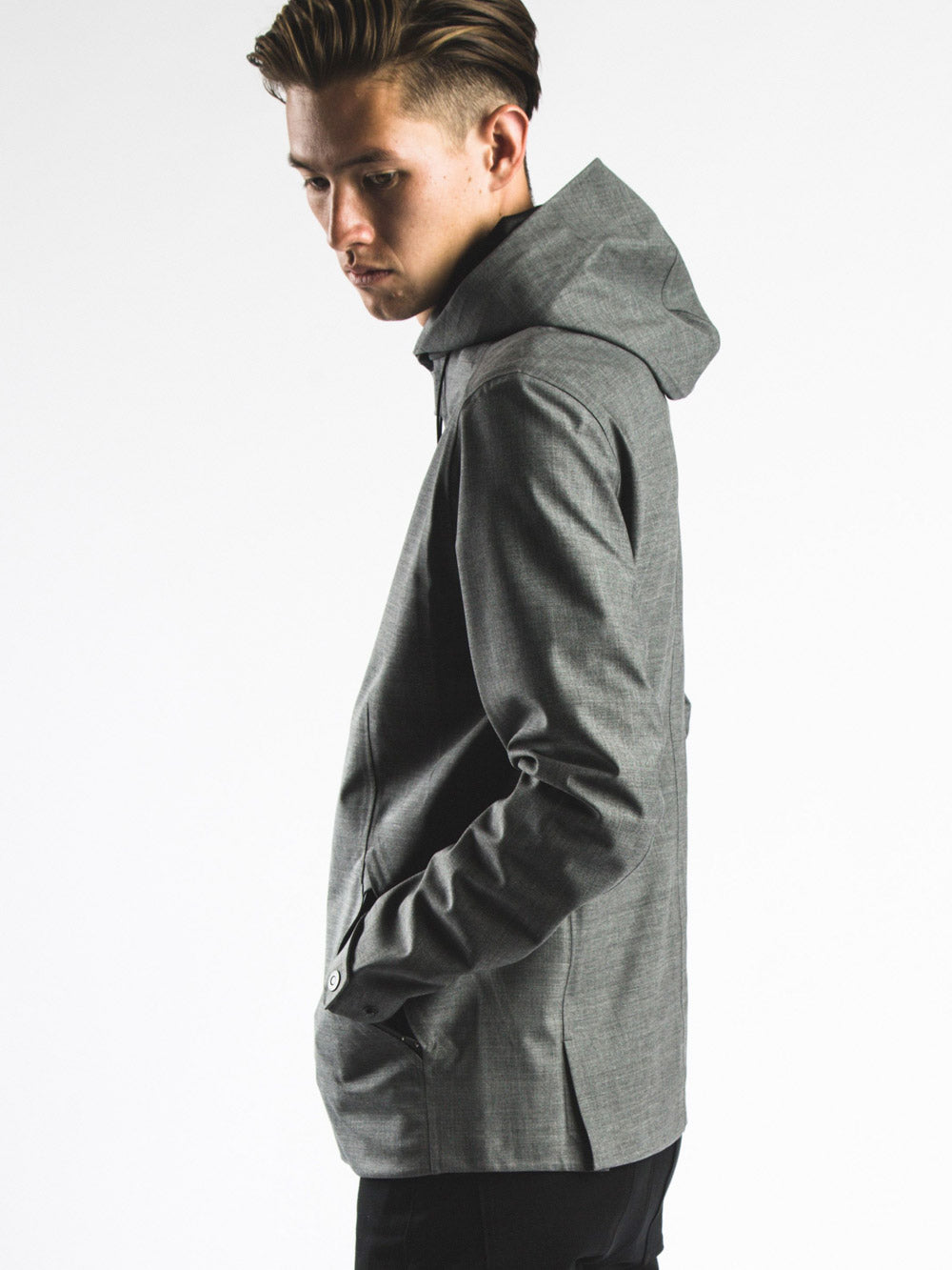 L'ajout de laine fine sur la face extérieure crée un aspect extérieur sur mesure, tandis que la construction imperméable et la capuche anti-tempête offrent un abri fiable lorsque le temps se gâte. Équipé de deux poches chauffe-mains à fermeture éclair YKK Aquaguard, de deux poches intérieures à fermeture éclair et d'une poche intérieure pour les billets.